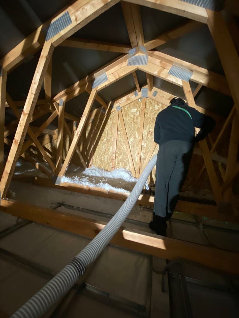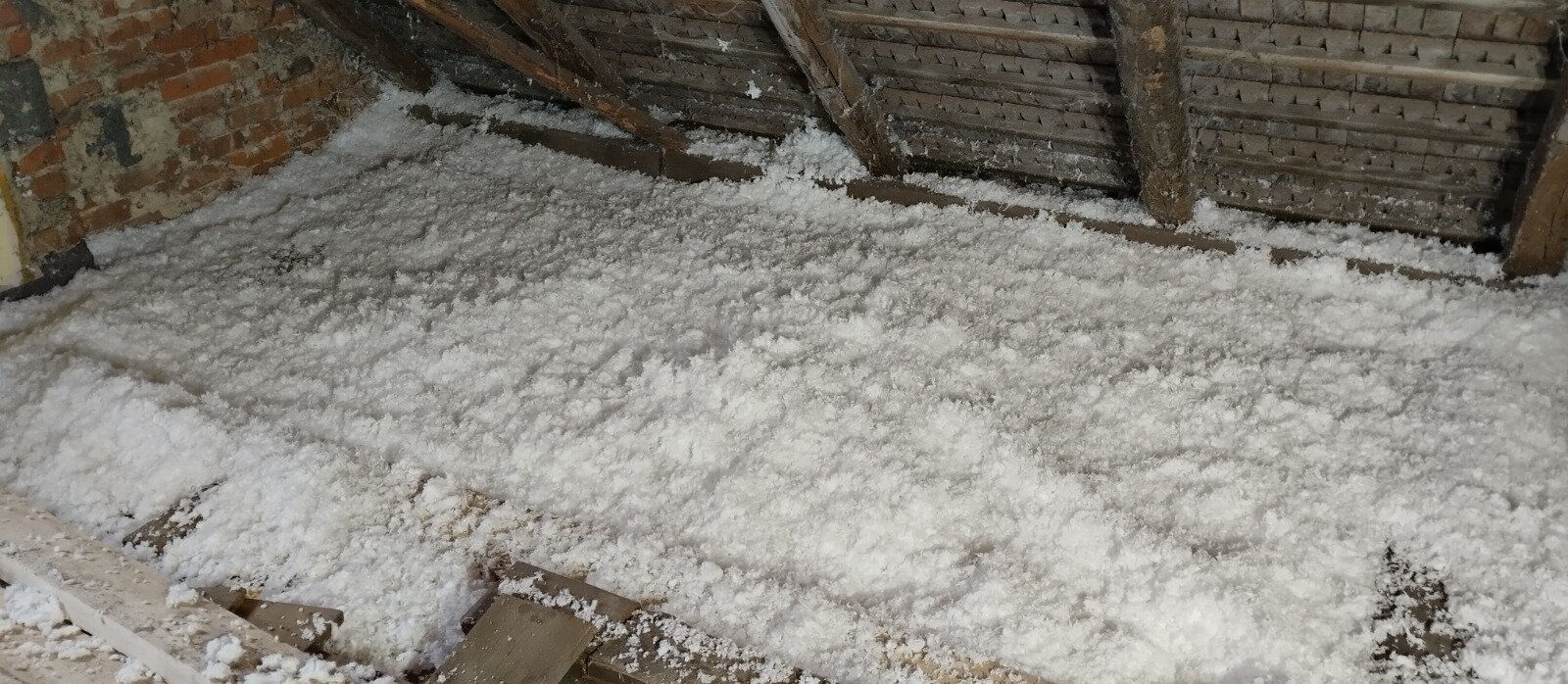 Novostavba, aplikované 400mm Knauf Supafil Loft, zatepľovaná plocha 250m2, trvanie 5 hodín.