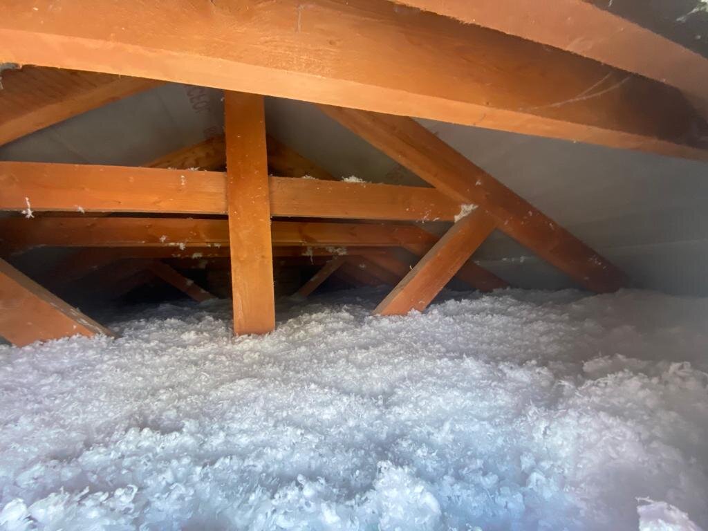 Zaizolovanie dutiny - trámového stropu domu z roku 1830. Bol aplikovaný Supafil Loft v hrúbke 200mm + doizolovanie podhľadov, pod ktorými si zákazník urobil verandu domu.
